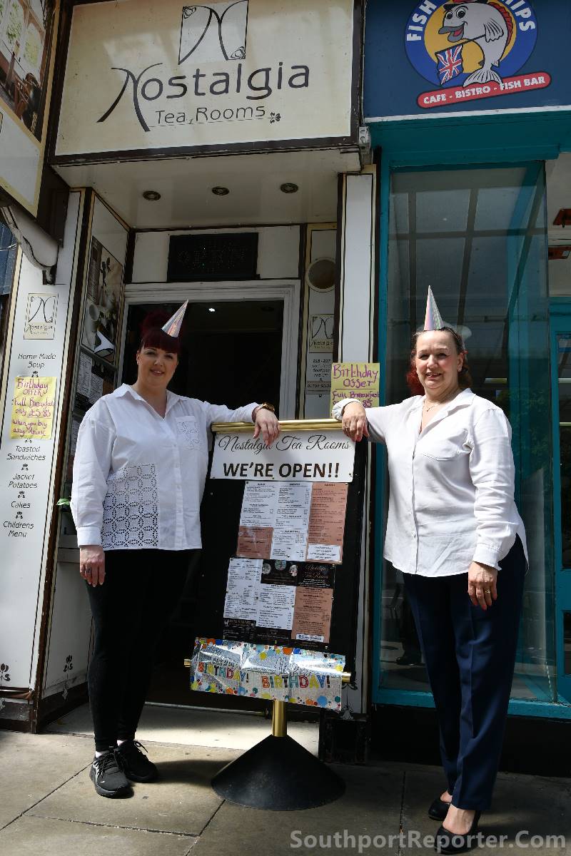 ALL those who visited the Nostalgia Tea Rooms, on Lord Street, Southport, on 27 May 2023, were treated to a free Prosecco Cocktail, and a slice of Birthday Cake to celebrate the Mother and Daughter owners 1st year as owners of this much loved establishment.