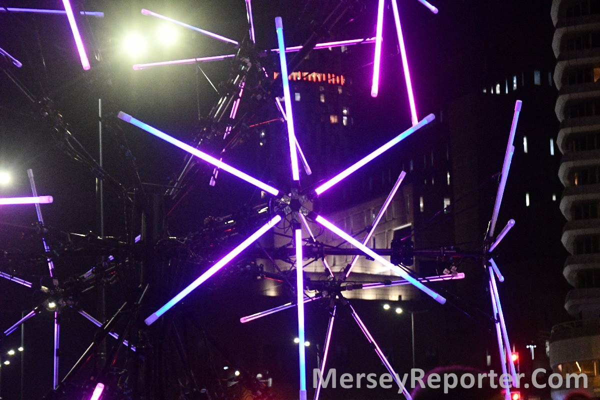 The event is offered as an alternative to the traditional firework displays, with artwork located within the historic waterfront and within parts of the Liverpool City Centre.