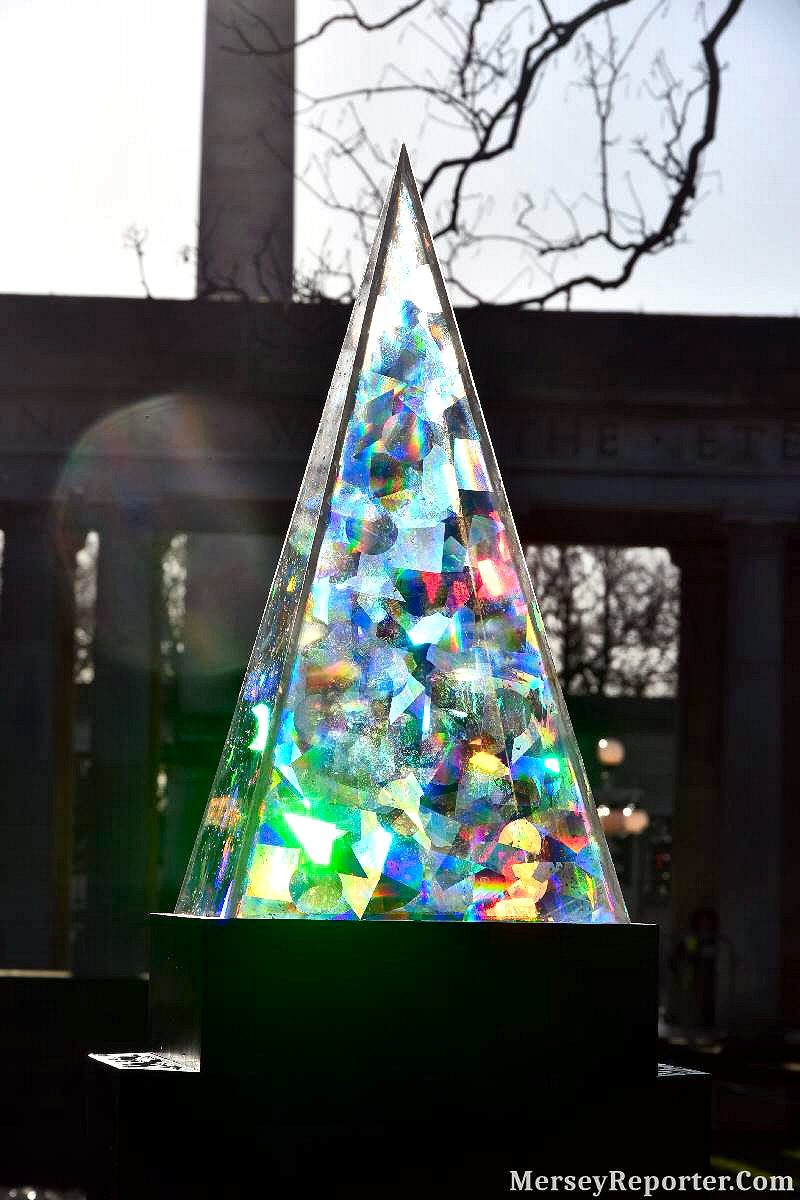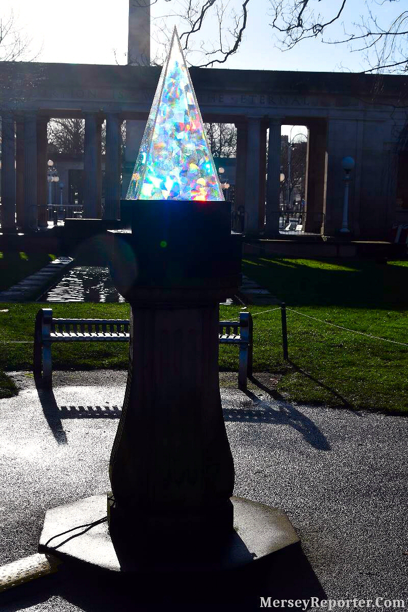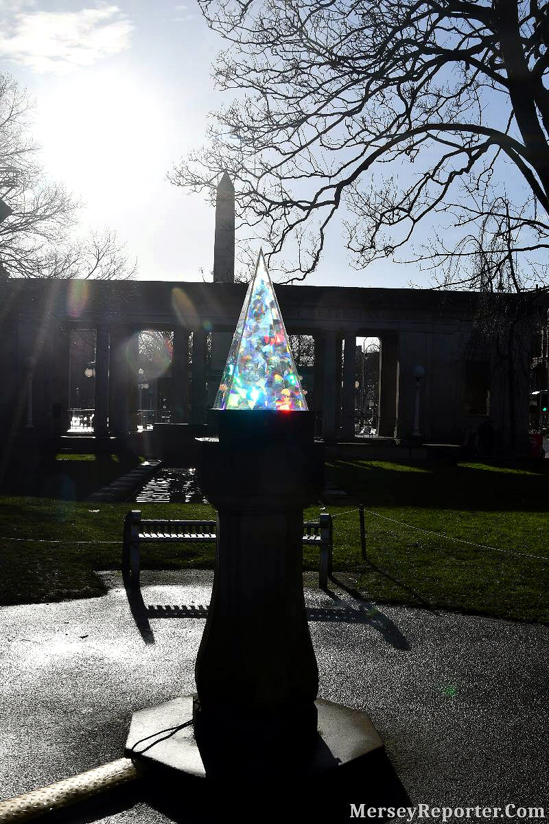 After being hypnotised by Zone 2, the entrancing fountain, you were met with reflective standing multi coloured lasers and fairy lit trees, which led to none other than a glistening white prism on a podium, emitting a bright light and sparkling through the entire weekend. Continuing through this wonderland, the next spectacle was a rainbow pond ahead of the War Memorial, located in Monument Square.
