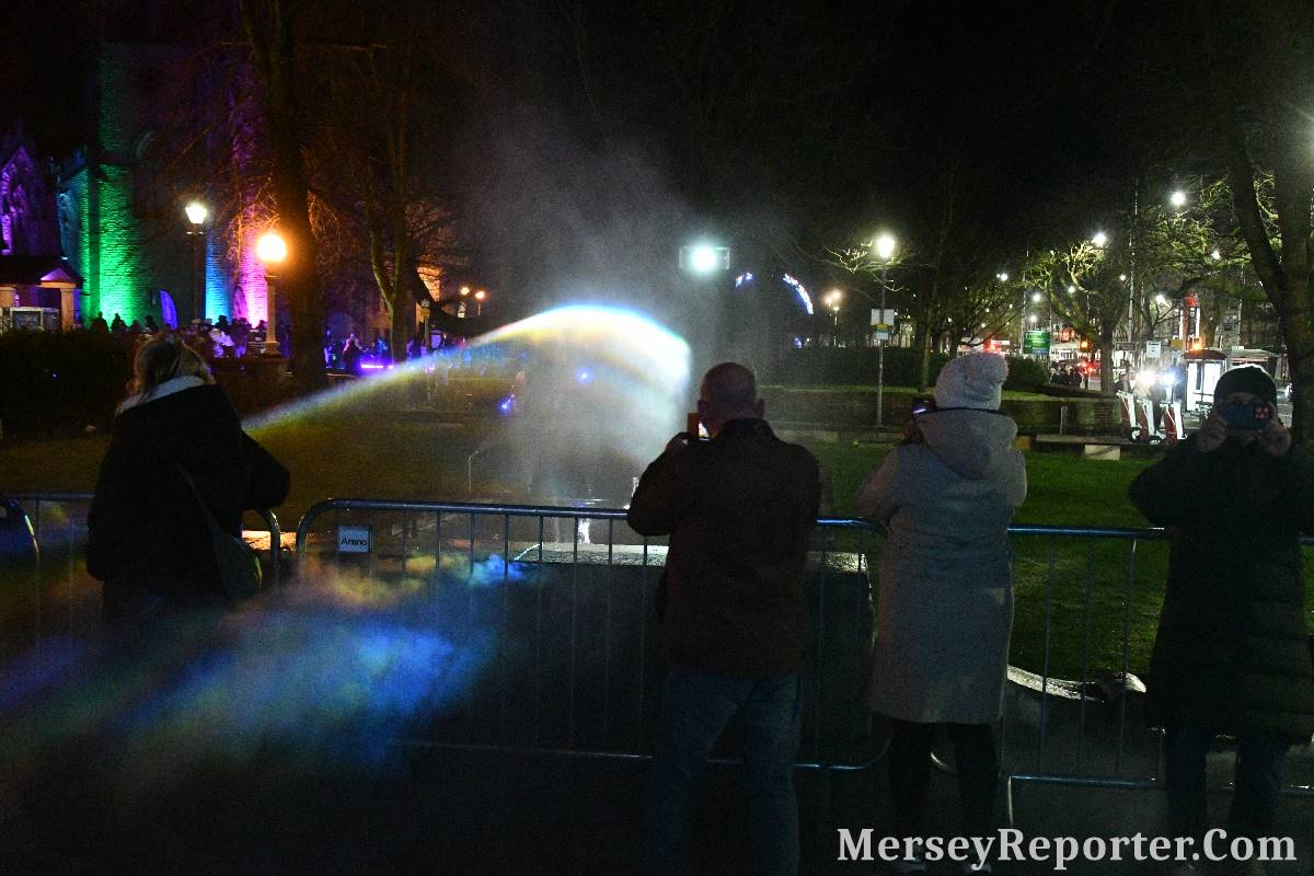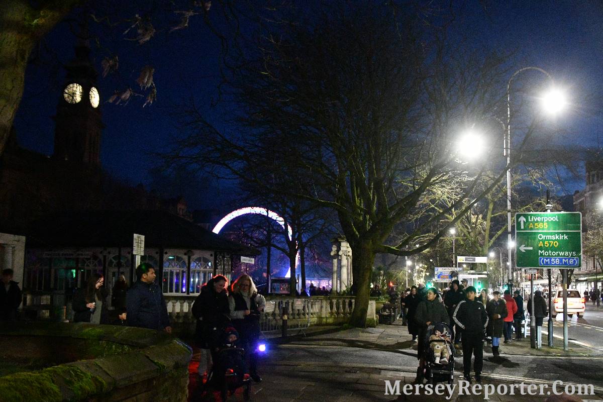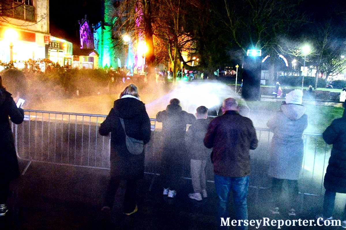 It was always going to be a popular event that would pulled the crowds as the Town is only a:- 40 minute train ride from Liverpool, but it became far busier than organisers had expected. Over the 3 nights the Town Centre the event drew crowds filled the streets with queues. We are told that the free event that gathered crowds of:- 40,000, almost ˝ the population of the Town!