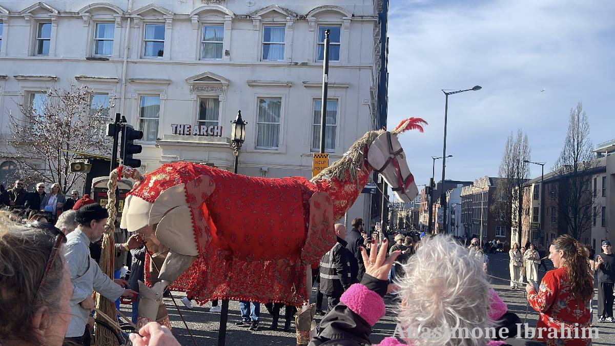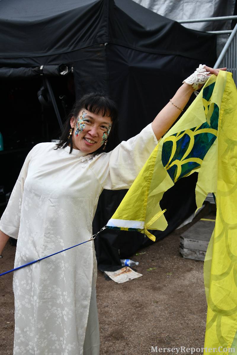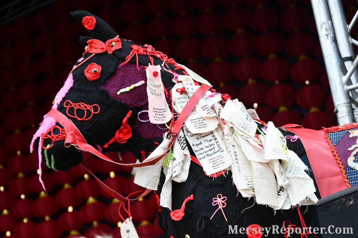 This is why the Organiser of the event:- Simon Wong, along with Culture Liverpool, created an animated horse covered in a beautiful red, flower filled mesh fabric, to trollop through the streets during the day.